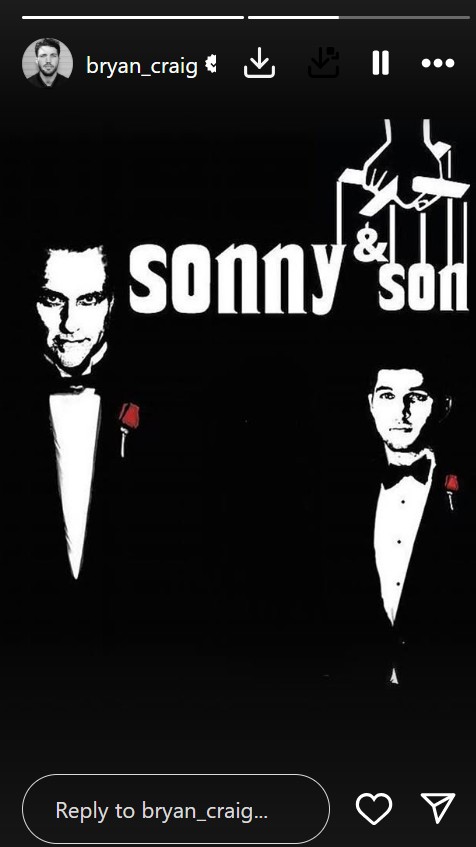 Along with the poll, there is a photo that features him and Sonny in a Godfather-type photo saying “Sonny and Son.”